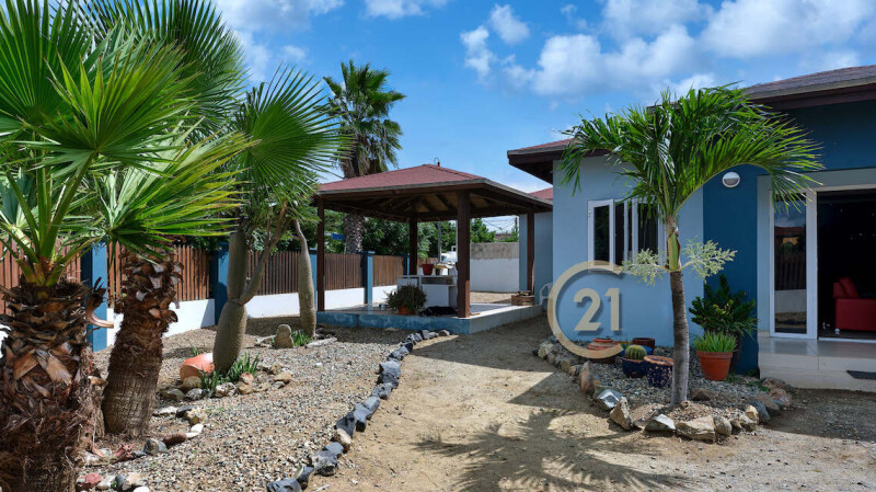 This 4-bedroom, 3-bathroom home is located in Mazurka's accessible, friendly, and quiet neighborhood, just a short 3-minute drive from Eagle Beach and is walking distance to Super Food and other grocery stores, restaurants, and entertainment spots. The house of 196 m2 (2109.7 sq.ft.) sits on 574 m2 (6178.4 sq. ft.) of long lease land. When entering the home, you will find a beautiful open space concept featuring a living area and dining area. The fully-equipped kitchen has built-in stainless-steel appliances and big breakfast bar where you can enjoy your morning coffee. Moving on, there's the master bedroom that features an en suite bathroom. The second bedroom has an en suite bathroom as well. The remaining two bedrooms are both large and share a bathroom. Enjoy outdoor living under the gazebo, ideal for entertaining friends and family. There is plenty of space to create your own oasis with lots of greenery or just keep it low maintenance just as it is. Some renovations are required but with a little TLC and your personal touch, you can make this the perfect home!